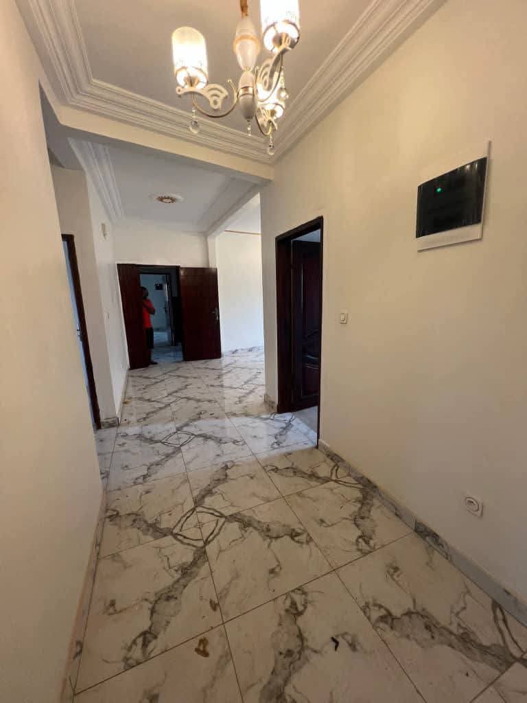 À louer, superbe appartement tout neuf (nouvellement construit) avec des finitions modernes. Le bien présente un sol carrelé brillant effet marbre et des plafonds avec moulures et lustres. Idéalement situé en bordure de route pour un accès facile.